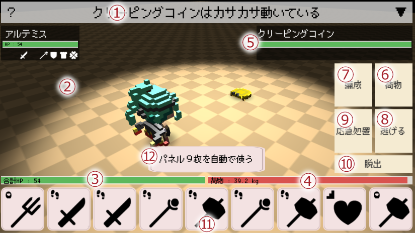 パネルを消費してHPを回復します。減ったHP分のパネルが消費されるので、パネル残数には気を付けてください。