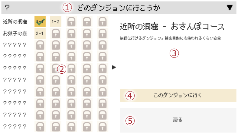 ②で選択したダンジョンの情報が表示されます。